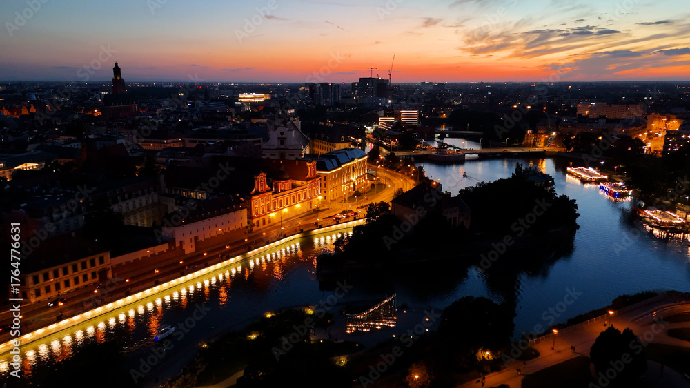 old European city city center view from above evening night illumination Wroclaw Poland #1764776631