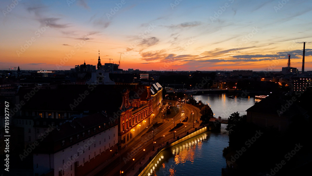 old European city city center view from above evening night illumination Wroclaw Poland #1781927767