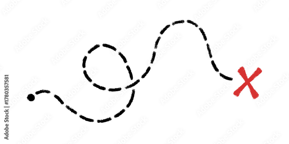 Old pirate treasure map. Dashed line and red X sign on travel paper map. Path to treasure and gold location. Old pirate letter. Vector illustration isolated on white background. #1780357581