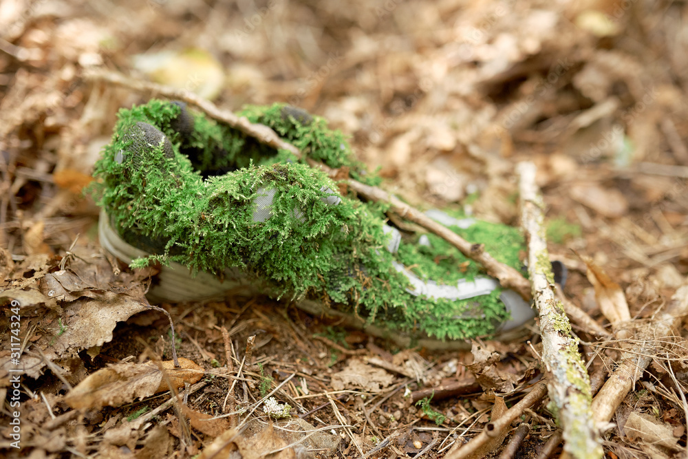 old shoe in forrest on ground ecology boots eco #311743249