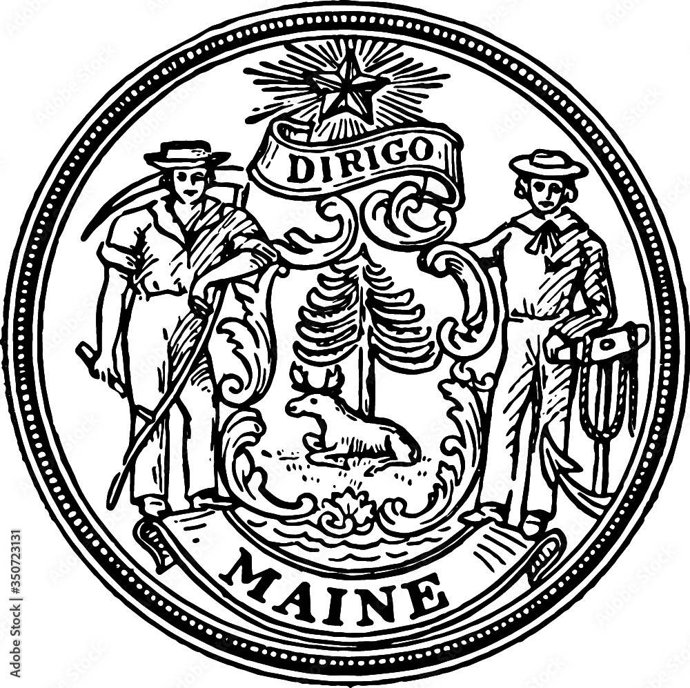Old Vintage Drawing of USA state Maine Seal #350723131