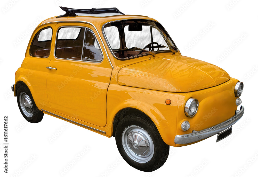 Old vintage orange microcar, isolated on transparent background. #1611617662