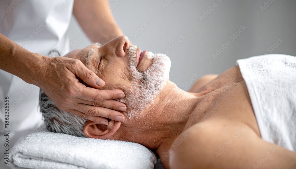 older persian man at the massage parlor getting a massage - relaxing and calming spa day #1862325558