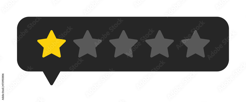 One star rating icon in chat bubble, lowest review score symbol for poor customer feedback and bad service, PNG with transparent background #1739150806