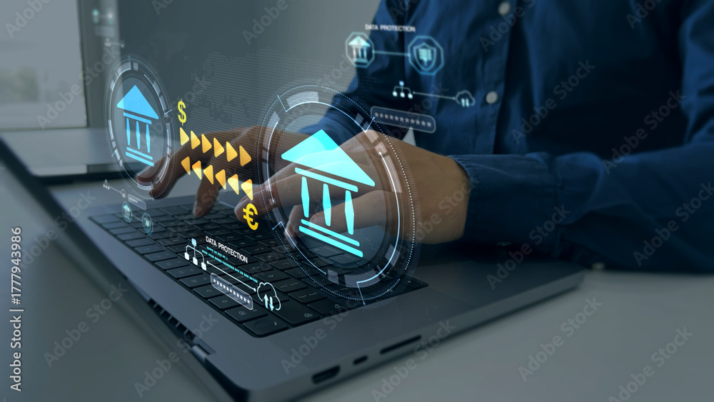 Online banking operations and interbank digital payment.Money transfers from different currencies internationally and currency exchange global. #1777943986