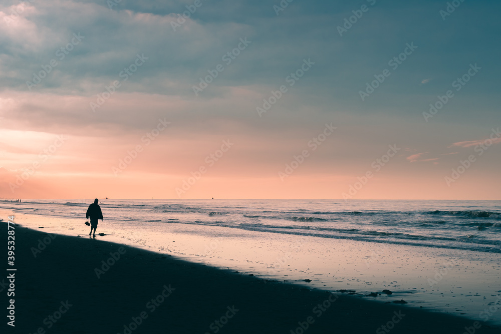 OOstduinkerke, Belgium - November 5, 2020: Beach walk at sunset #395328774