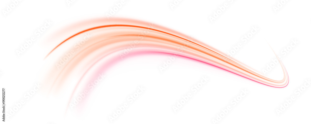 Orange and red neon streaks spiral through abstract black space. Motion trails create depth and speed illusions. Ideal for futuristic vector graphics. PNG #1900212277