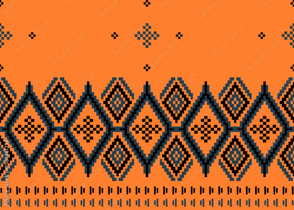 Orange Ethnic Geometric Diamond Pattern - Woven Textile #1581401734