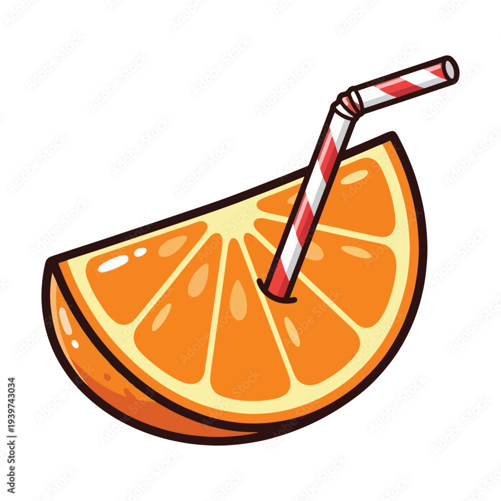 Orange Slice with Drinking Straw – Fresh Citrus Drink Cartoon Illustration #1939743034