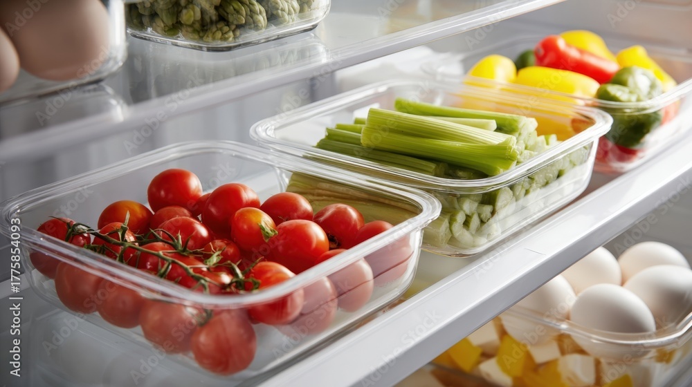 Organized Refrigerator with Fresh Produce in Clear Containers for Healthy Eating and Meal Prep #1775854093