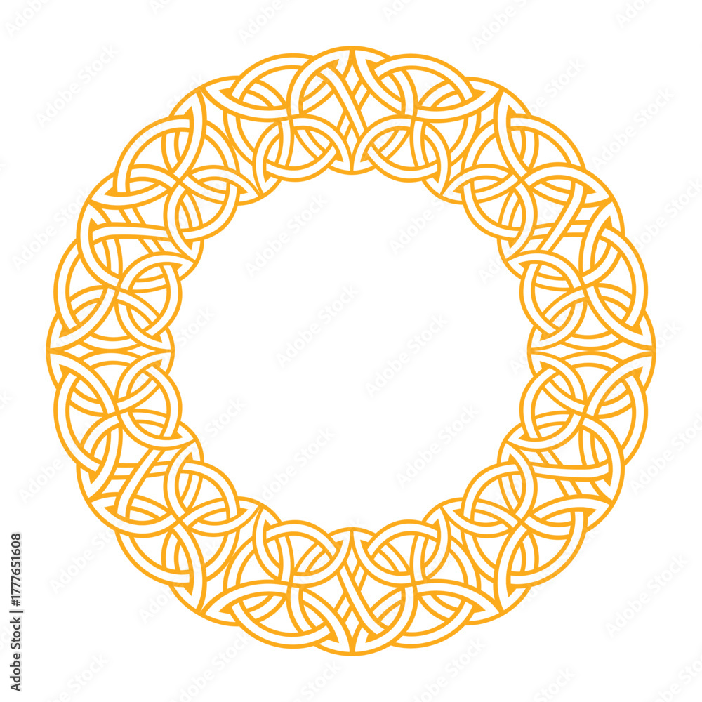 Ornate celtic and nordic circular frame design in gold, ideal for various creative and design projects. #1777651608