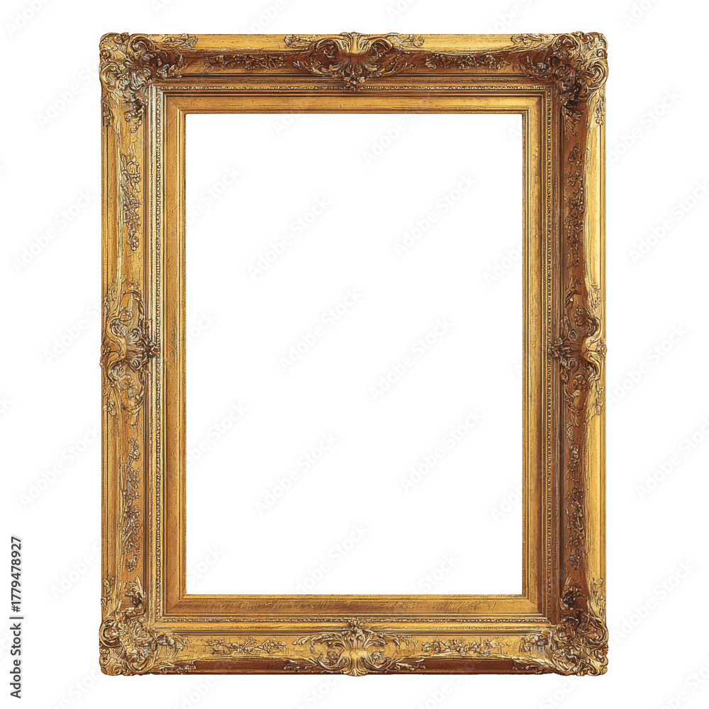 Ornate gold picture frame with intricate carvings photo isolated on a transparent background #1779478927