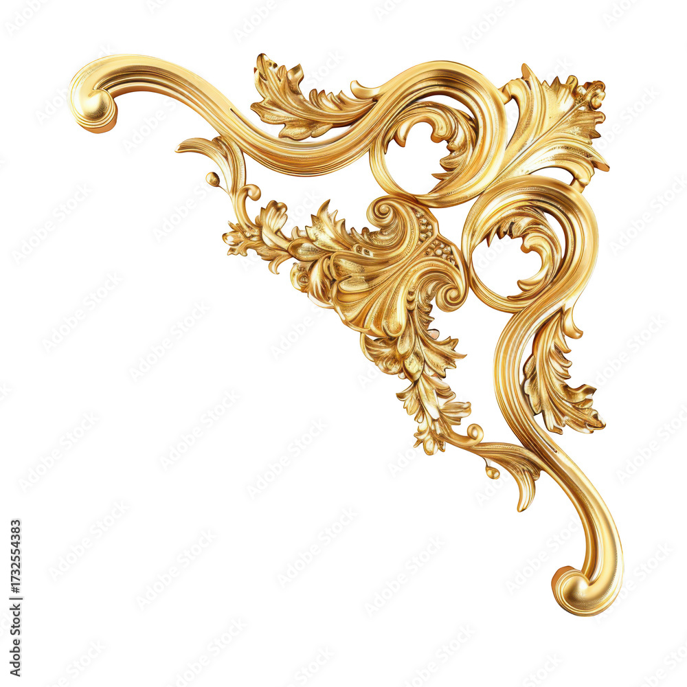 Ornate golden decorative corner element with swirling acanthus leaves isolated on a transparent background #1732554383