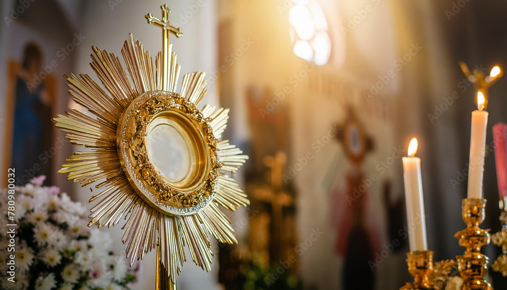 OSTENSÓRIO COM A HÓSTIA CONSAGRADA EM ADORAÇÃO AO SANTÍSSIMO #780980032