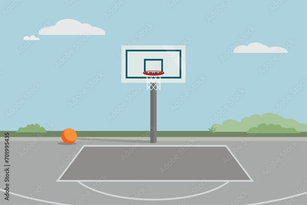 Outdoor basketball court vector illustration. Minimal flat style, empty background scene graphic. #701995435