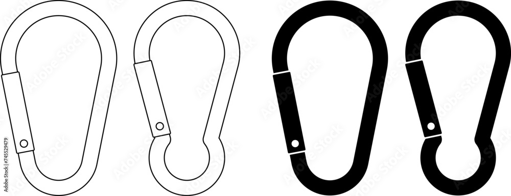 outline silhouette Carabiner clip icon set #745529479