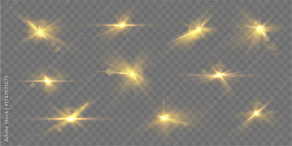 Pack of LED strobe spot lighting with radiant beams. Glowing streaks and sparkling flares create intense light effects. Perfect for stage design, concerts, parties, or creative digital visuals. #1747801075