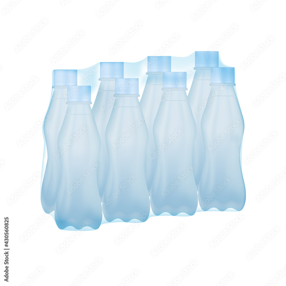 Packed of bottled water in plastic shrink wrapped package. Vector and illustration design #430560825