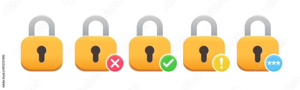 Padlock security icon set with status indicators for access, validation and protection. Privacy concept #1972757890
