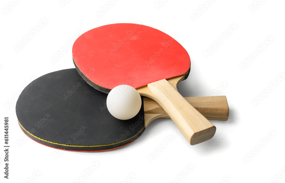 Pair of table tennis paddle and ball isolated on a white background #611445981