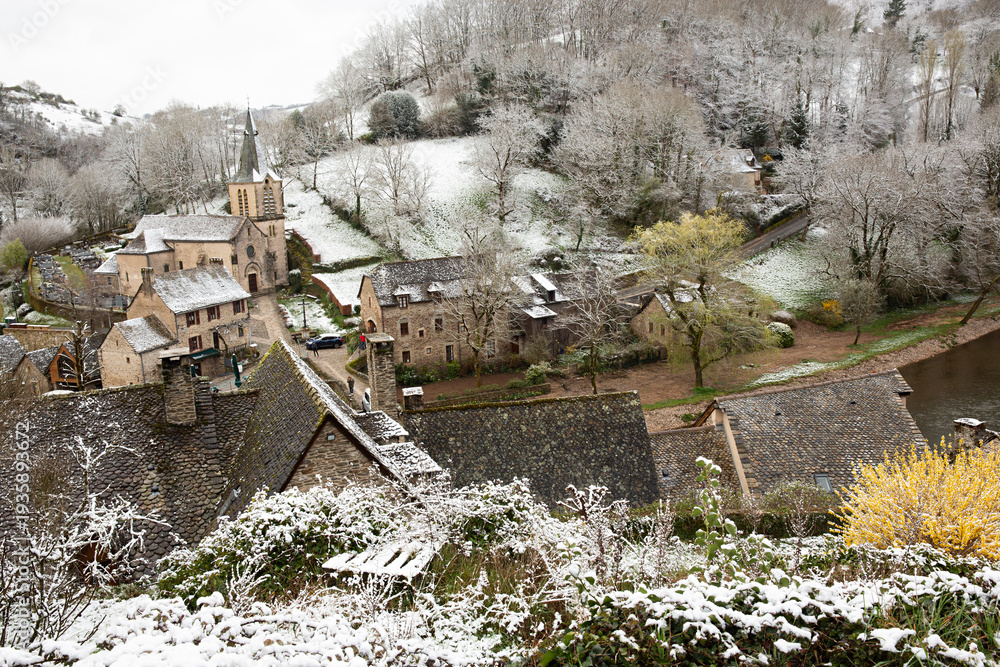 Paisaje nevado de Belcastel, Francia. #1935893672