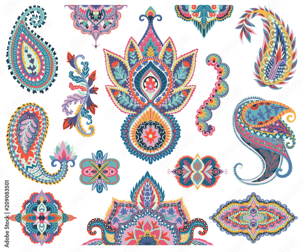 Paisley set. Oriental decorative design elements for fabric, prints, wrapping paper, card, invitation, wallpaper. Vector illustration #209083501