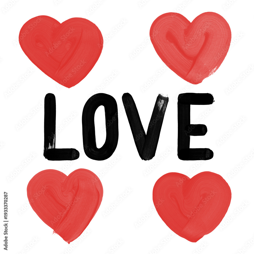 Palabra LOVE con unos corazones rojos hechos con pincel en los que se nota la pincelada de los trazos #1933370287
