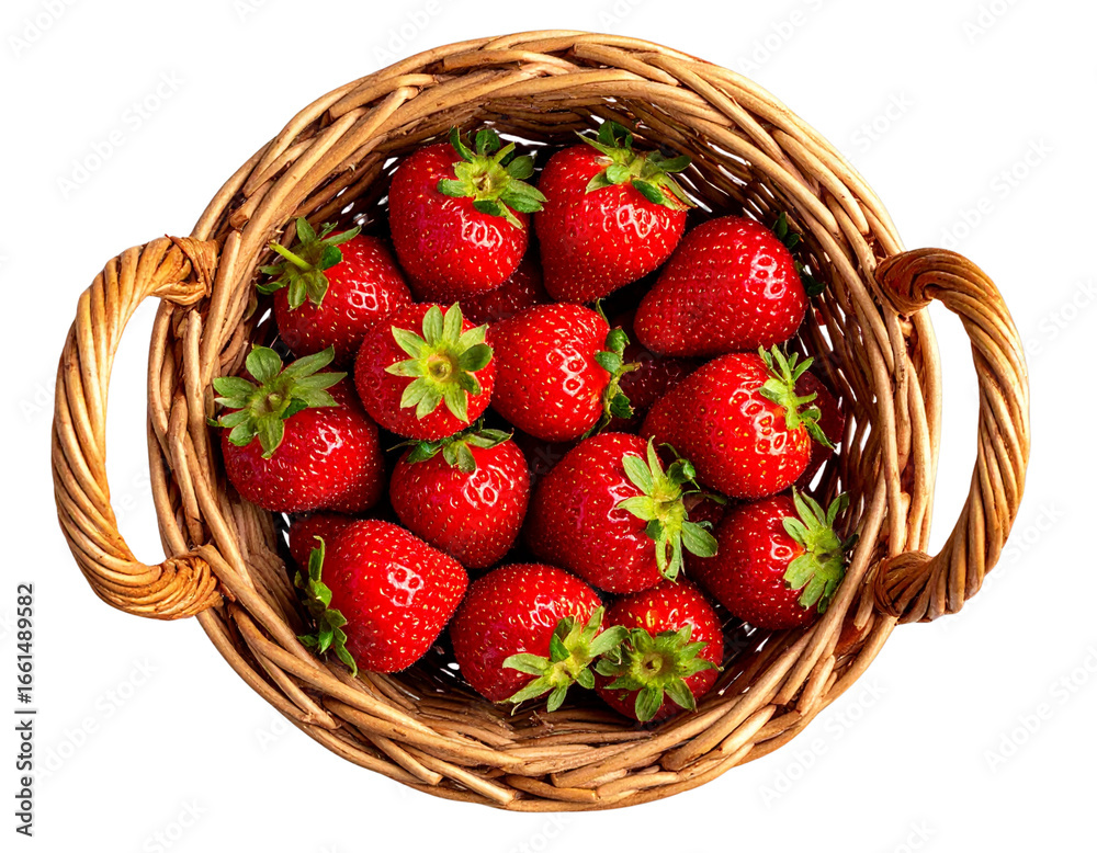 Panier Rustique Rempli de Fraises Fraîches, Vue du Dessus, isolé sur fond transparent png #1661489582