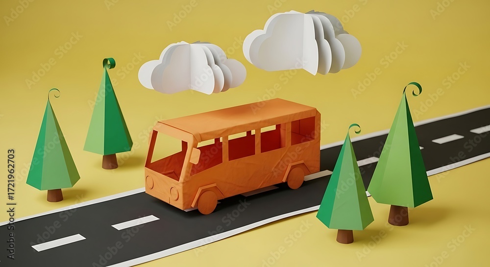 Paper Art Bus on a Road Trip 3D Rendered Illustration for Children s Education and Creative Learning #1721962703