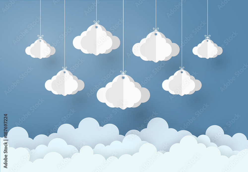 Paper art design mobile style the concept is rainy season, Cloud and Rain on dark background , vector design element illustration #187697224