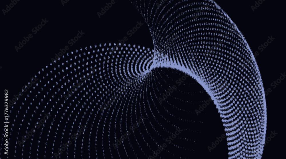 Particle flow, hypnotic lavender dot arc, Fibonacci spiral in grainy harmony. #1776329982