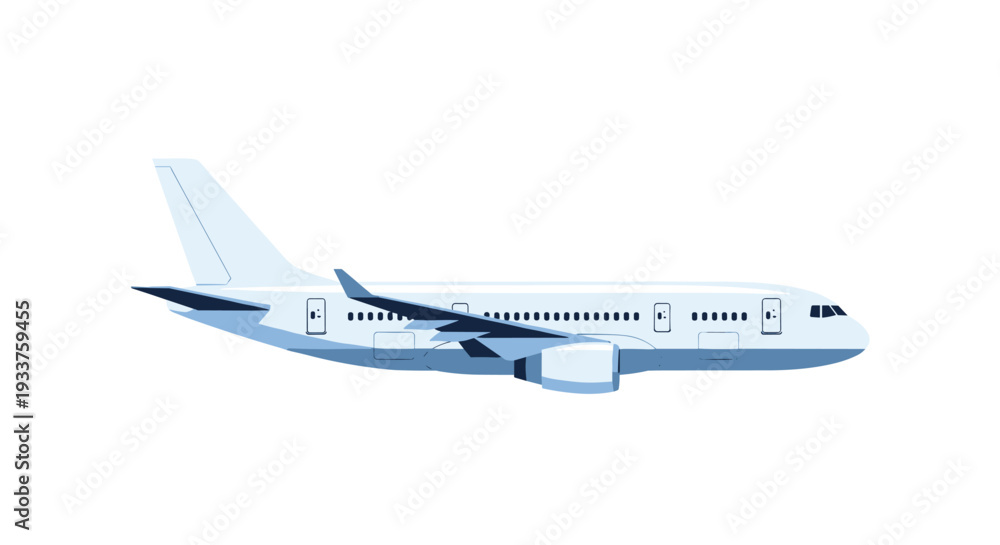 Passenger airplane flying in the sky side view isolated on white background for travel and aviation transportation concepts. #1933759455