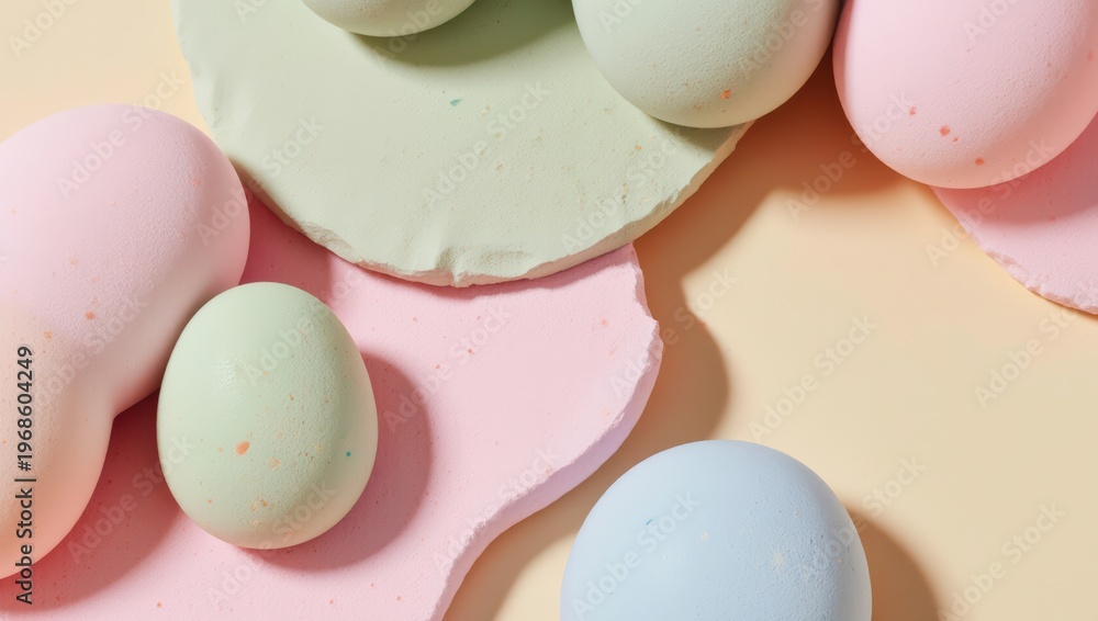 Pastel Speckled Easter Eggs Scattered Composition Cream Background Minimal Nordic Spring Vertical #1968604249