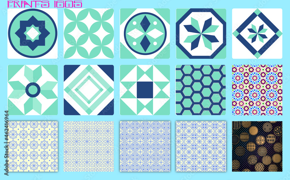Pattern vector tiles traditional textures ornamental ceramics Spanish Portuguese Mexican Arabic Moroccan Italian colonial hydraulic majolica Turkish azulejos baldosas losetas racholas cerámicas #462416964