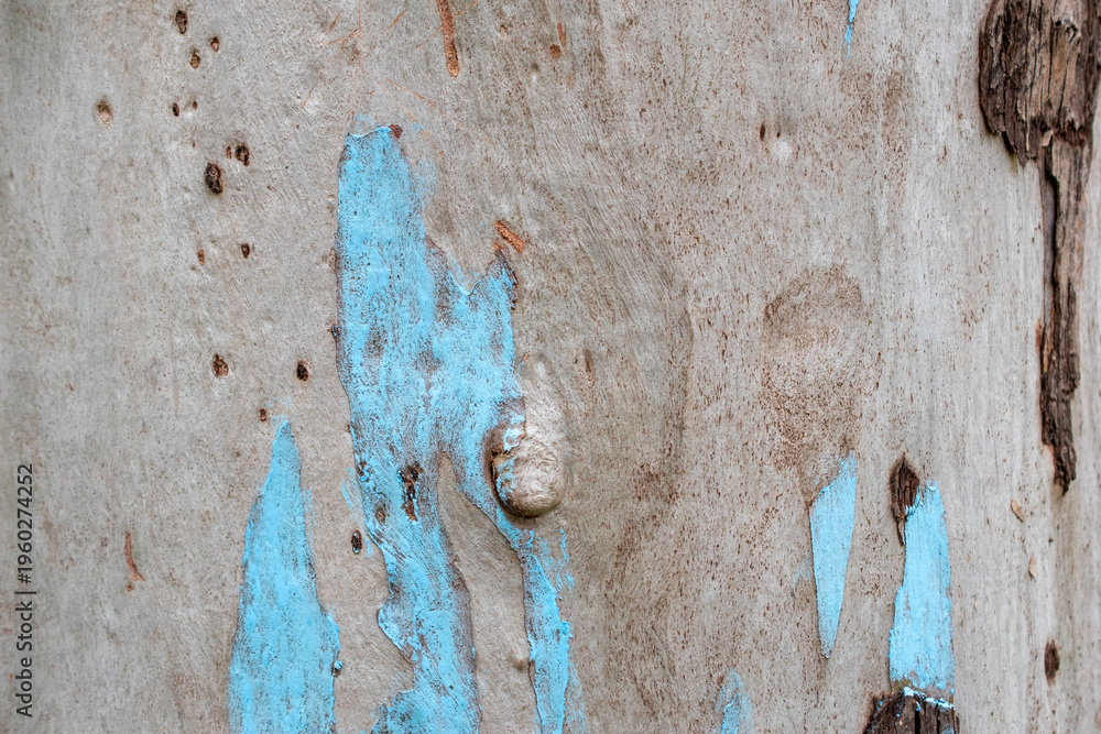Peeling Tree Bark with Blue Paint Texture #1960274252