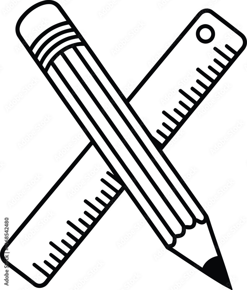 Pencil and ruler cross design vector, school supplies and education tools outline. #1968542480