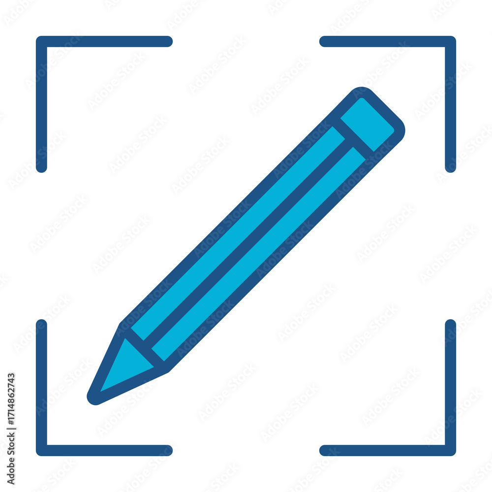 Pencil Icon In Blue Monochrome Flat Design, Vector Illustration #1714862743