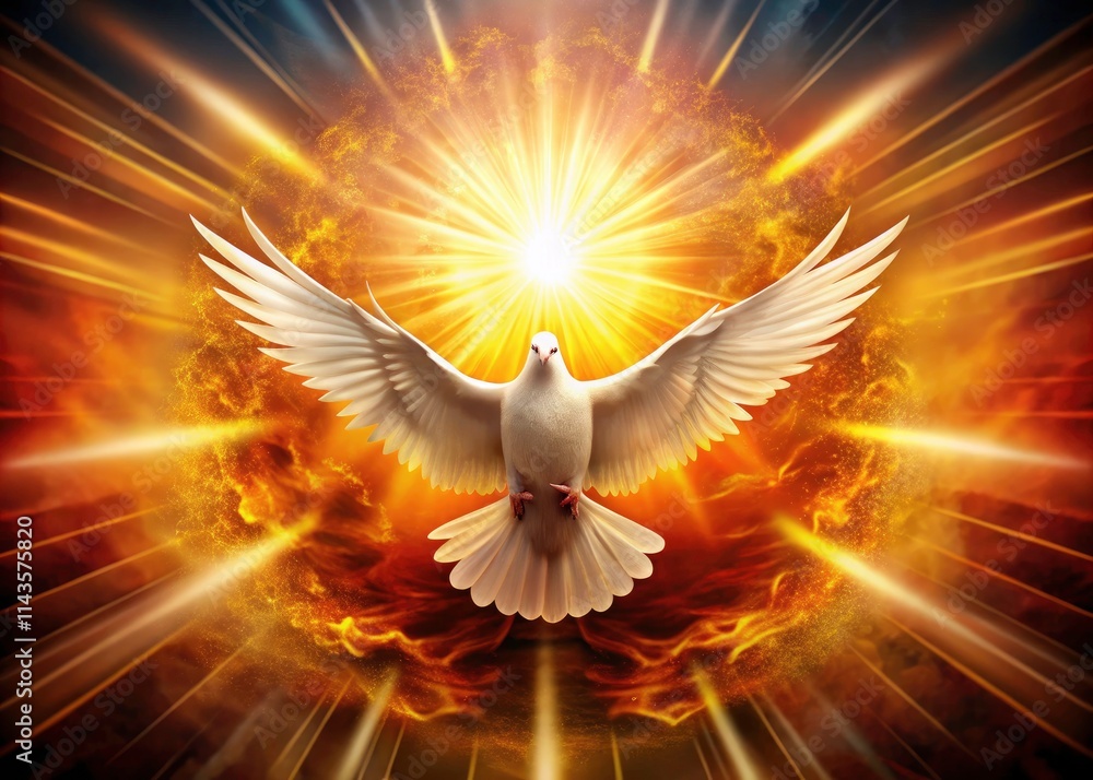 Pentecost Sunday Design: Holy Spirit Dove, Fire Tongues, Christian Poster, Card, T-Shirt Print #1143575820