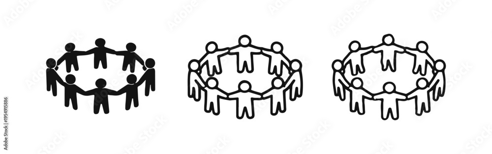 People holding hands in a circle icon set - Teamwork, community, and unity symbols in various styles. #1954915886
