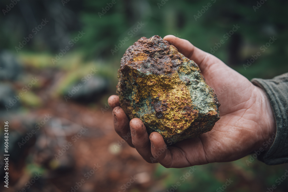 Person holding uranium ore in natural outdoor setting #1606824136