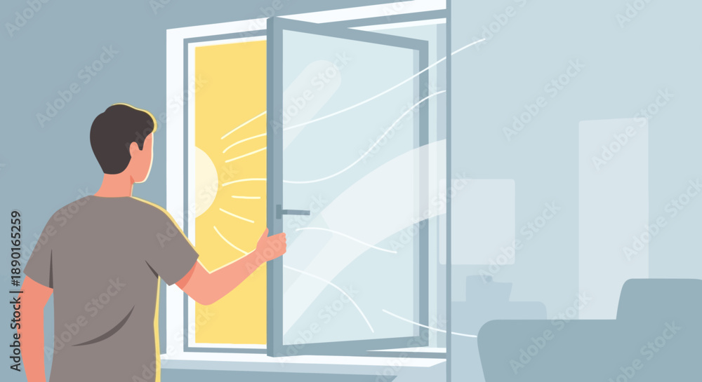 Person Opening Window in Modern Interior of a Building. #1890165259