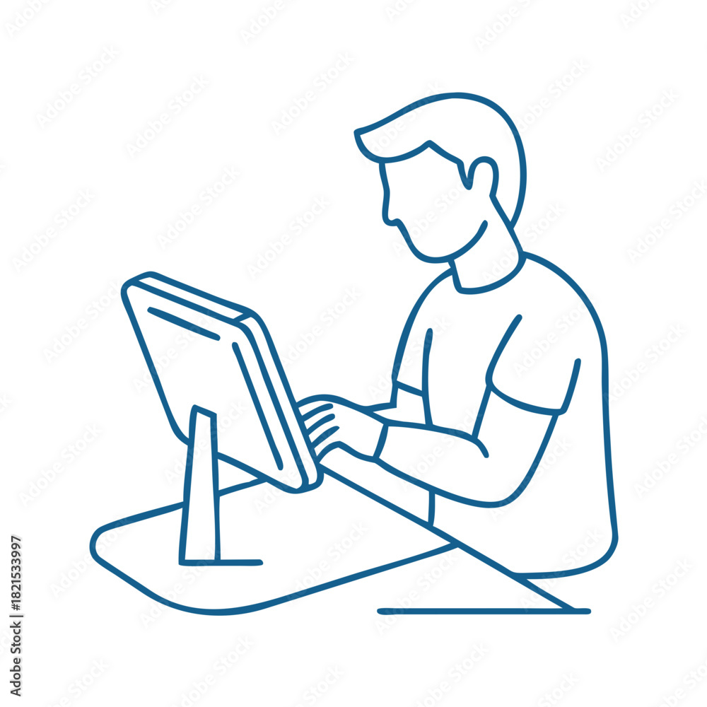 Person sitting with tablet on stand for promoting hands-free device usage in accessibility and convenience #1821533997