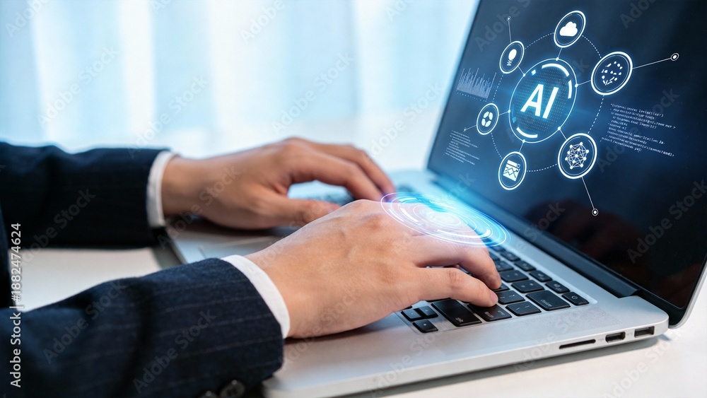Person working on AI technology using laptop #1882474624