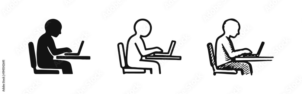 Person Working on Laptop Icon Set - User Typing at Desk Vector Illustration #1941542641