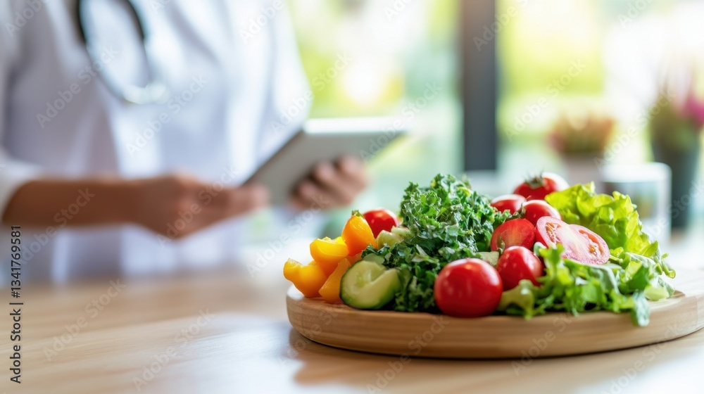 Personalized Nutrition Consultation - Nutritionist Advising Client with Healthy Meal Plan and Balanced Diet Chart on Tablet #1341769581