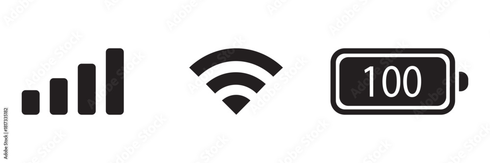 Phone bar status Icons. Battery, signal, wifi icons, simple design. Status bar icon phone signal wifi battery icon. iPhone ios notification bar battery wifi signal icons vector illustration. #1817335182