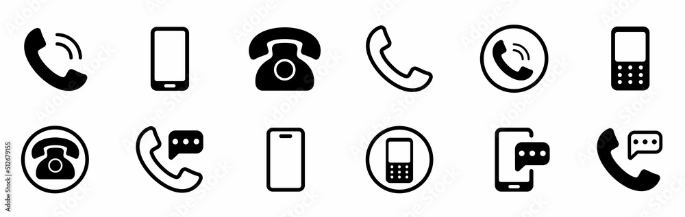 Phone icon set. Chat bubble icon. Telephone call sign. Contact icon phone mobile call. Contact us. Contact us symbol. Cell phone pictogram. Vector illustration #512679155