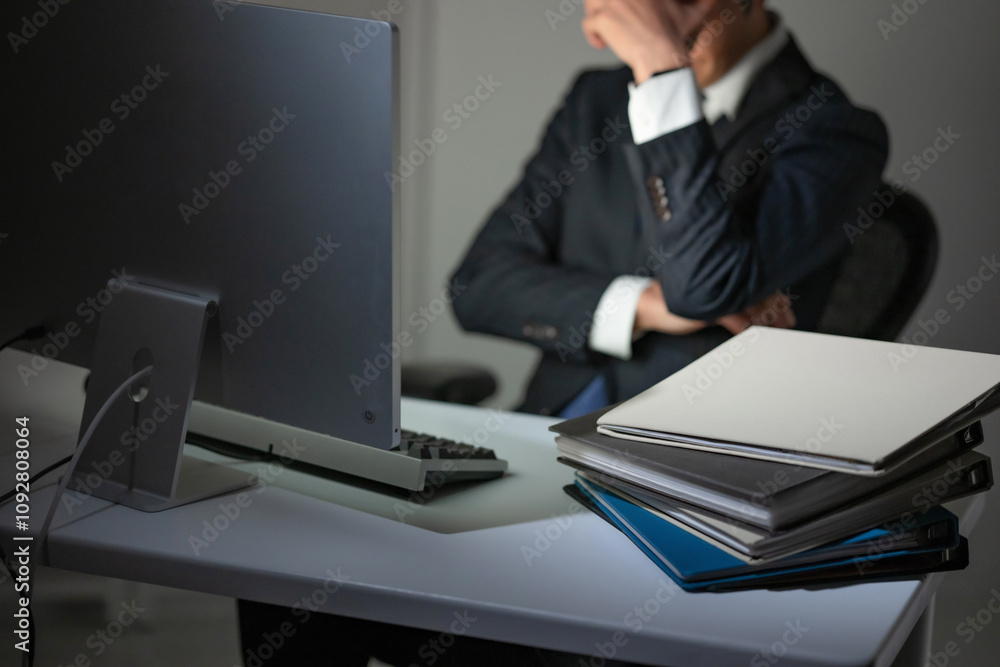 疲れながら仕事をするビジネスマン #1092808064