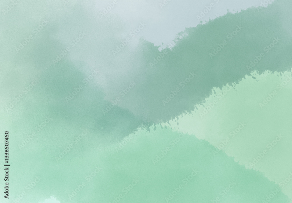 緑と、薄いブルーグレーの色の背景、滲んだ水彩画風の壁紙素材 #1336507450