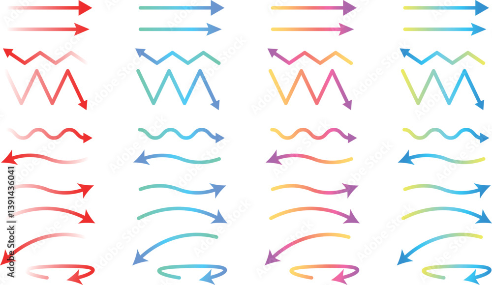 カラフルな虹色グラデーション矢印ベクターセット #1391436041